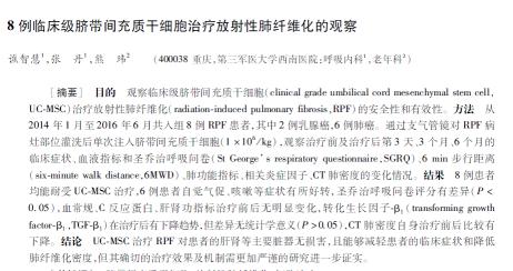 这项研究首次观察到脐带间充质干细胞治疗放射性肺纤维化相对安全和有效,研究人员推测,脐带间充质干细胞通过减少转化生长因子(TGF—β1)抑制了纤维化的形成。
