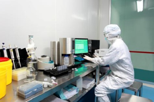 (工作人员操作间充质干细胞计数仪 摄于四川省干细胞库)
