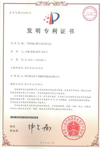 近日,由四川新生命干细胞科技股份有限公司研发团队开发的“一种检测人精子活力的方法”正式被国家知识产权局授予发明专利证书,今后评估男性生育能力的重要标准——精子活力的检测,将变得更加简便、快速、准确。
