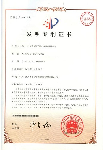 近日,由四川新生命干细胞科技股份有限公司(以下简称公司)细胞培养中心研究团队开发的《一种间充质干细胞冻存液及注射液》,获得国家发明专利证书,这标志着公司在间充质干细胞研究上再次取得重大进步。