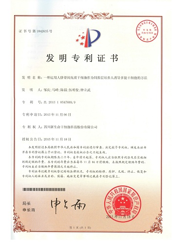 近日,由四川新生命干细胞科技股份有限公司(以下简称公司)研发团队开发的《一种运用人脐带间充质干细胞作为饲养层培养人诱导多能干细胞的方法》获得国家发明专利。本发明可以长期有效培养人诱导多能干细胞,无异源细胞和异源蛋白的污染,具有良好的应用前景。