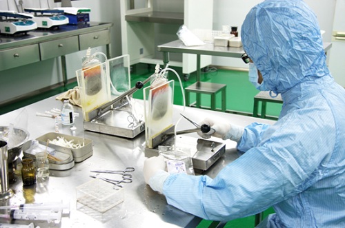工作人员在制备脐带血造血干细胞
