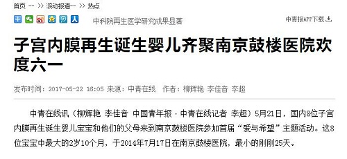 03中青在线:脐带间充质干细胞可修复子宫内膜 14名再生医学宝宝应运而生