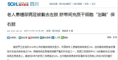 04 四川在线:老人患糖尿病足被截去左肢 脐带间充质干细胞“出鞘”保右肢