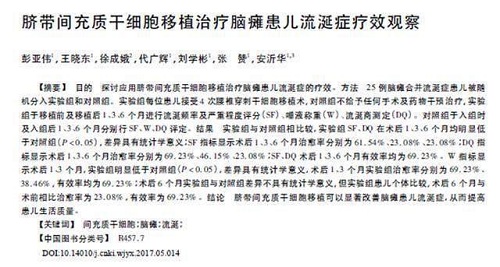 06 武警医院:脐带间充质干细胞能改善脑瘫患儿流涎症